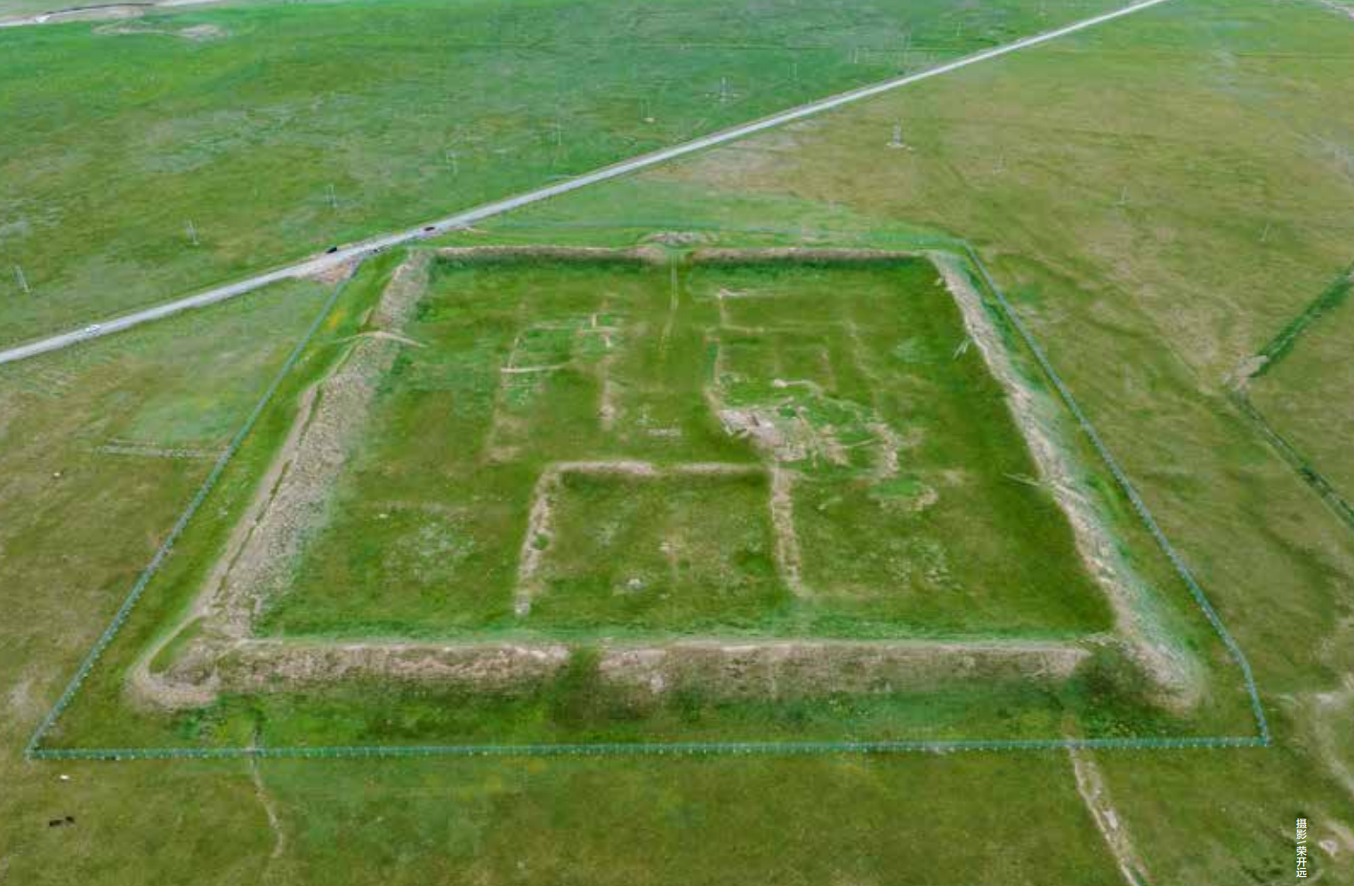 这是青海湖畔常见的草原风光,可在此的布哈河之南还有异象:一丛丛芨芨草生长得纵横有序,在原野中排列出规则的几何图案。无需怀疑,此乃古城遗迹所致,从草丛勾勒出的痕迹来看此城规模不小,城墙东西长220米,南北宽200米,墙基厚17米,有些地方残高尚有6米。古城遵循中原建筑规范,自城门起向北有一轴线,中轴两旁有隆起的长50米、宽35米的3个连接房基遗址,最西还有一东西长70米、南北宽68米小方城(亦可能为方院)。小方城东侧有门,西墙与大城西墙重合,同南城墙之间有一长15米、宽9米的夯土台,台上有房屋遗迹。城南墙有阔10米的城门,城中交织的通衢与城墙平行,将城区划分为汉地常见的棋盘式布局。