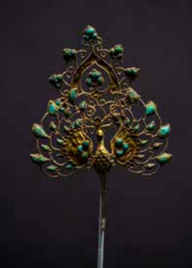 嵌松石立凤金头饰,吐蕃时期,现藏青海藏医药文化博物馆