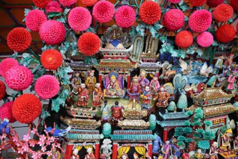 塔尔寺酥油花展。酥油花是以酥油所塑艺术品的通称,被称为塔尔寺艺术三绝之一