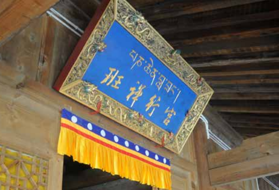 永乐十一年即1413年,宣德二年是1427年。这两条题记的内容,意味着宏觉寺大殿在明初重修时,明成祖朱棣曾专门派太监前来监工。明宣宗更是曾赐给宏觉寺一座金佛像。从这位“灌顶净慈普应国师”托思巴监参开始,终明之世宏觉寺共有8名高僧被授予国师头衔。这样的荣耀一直延续至清代。上文提到,六世班禅曾进京觐见乾隆皇帝,那时除了塔尔寺,班禅也曾在宏觉寺停留。因为正值隆冬时节,寺中为建造班禅行宫,特意以黄酒调和泥巴,致使宏觉寺后来竟有了“黄酒寺”的别名。六世班禅也将自己的弟子二世嘉木样·晋美旺波任命为宏觉寺住持。