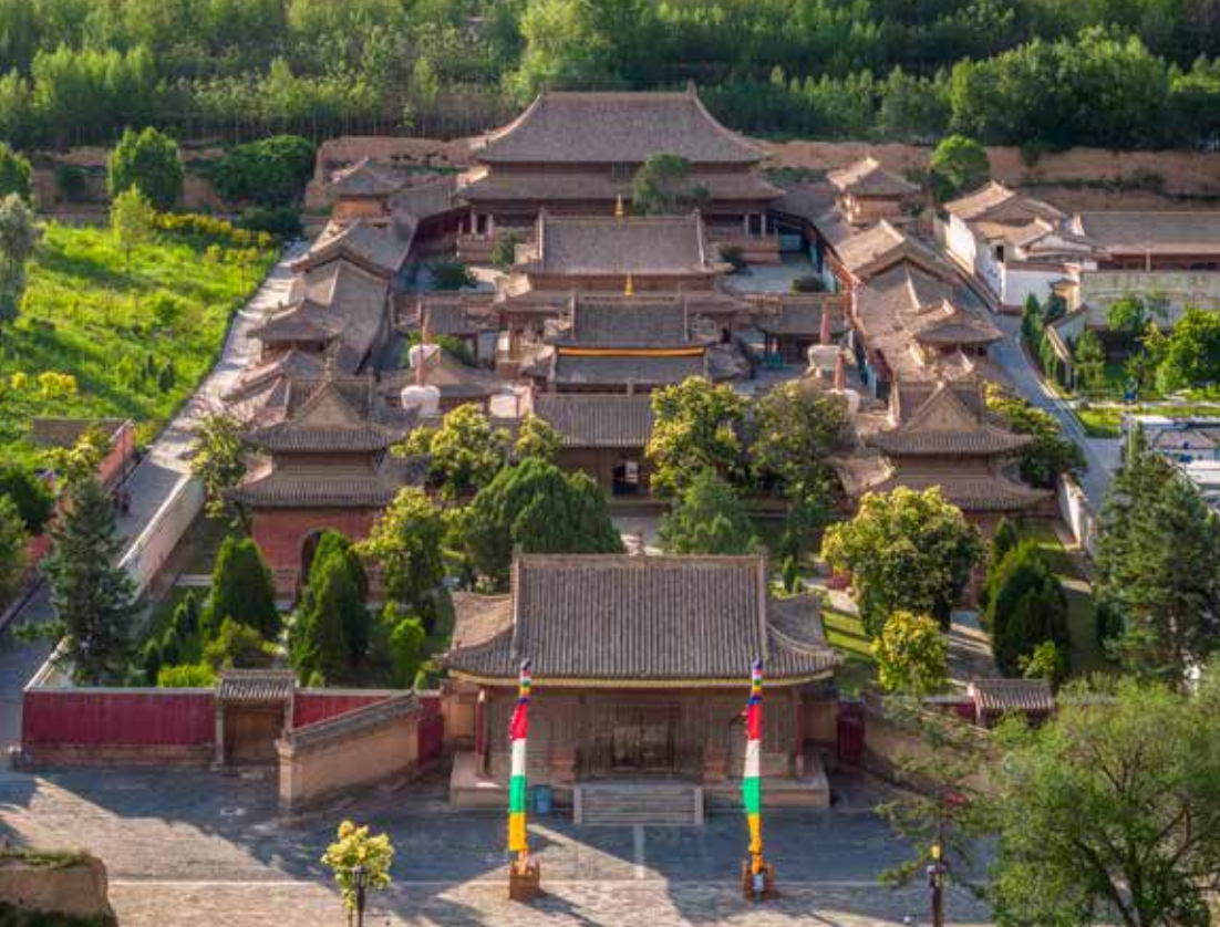 瞿昙寺全景航拍。这一明代皇家寺院位于青海省海东市乐都区,于洪武二十六年( 1393)得到明太祖朱元璋敕额,随后明成祖、明宣宗均对瞿昙寺颇为宠眷,派遣内监至此模仿皇宫规格修建大殿,瞿昙寺因此号称“高原小故宫