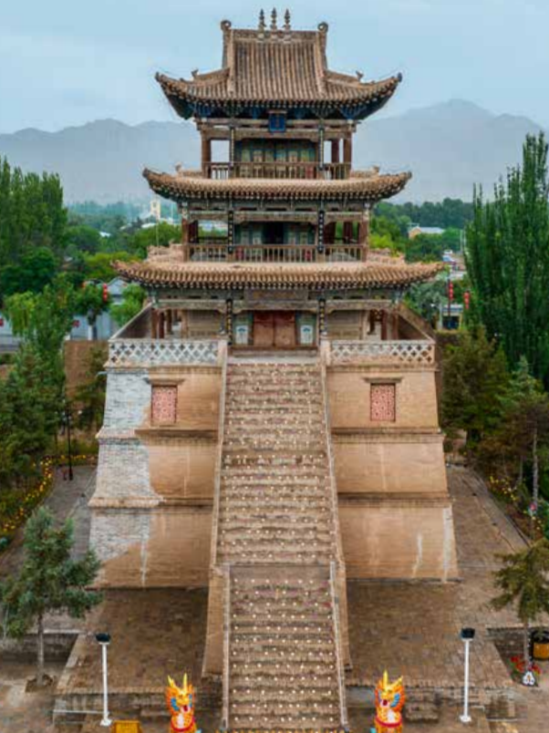 青海省海南藏族自治州贵德县黄河岸畔的文庙及玉皇阁古建筑群。贵德所处的河湟地区,是中原与西南、西北少数民族聚居区的过渡地带。历史上,这里也是农耕文明与中原文化播散的窗口