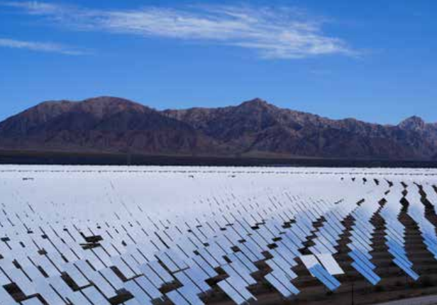 德令哈50MW塔式熔盐光热电站下的定日镜,通过高精度智能调控,数万面定日镜时刻自动追踪太阳射角变化,让阳光能均匀反射到塔顶吸热器
