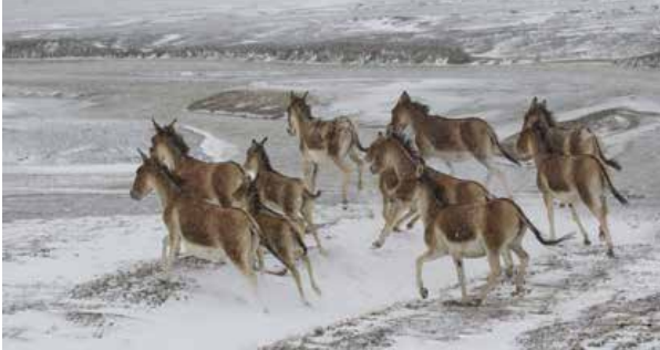 藏野驴是青藏高原特产动物,栖息于海拔4200一5100米间的高原、高寒荒漠草原和山地荒漠带是我国一级保护动物